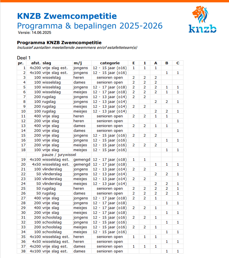Inzwemmem 13:45 tot 14:10 aanvangwedstrijd 14:15 Gezien het grote aantal deelnemers aan het ZWZK is er deze zondagen ook de mogelijkheid om gebruik te maken van het Instructiebad. Let op!... |