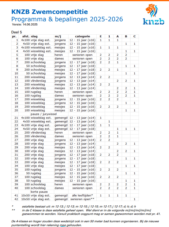 Inzwemmem 13:45 tot 14:10 aanvangwedstrijd 14:15 Gezien het grote aantal deelnemers aan het ZWZK is er deze zondagen ook de mogelijkheid om gebruik te maken van het Instructiebad. Let op!... |